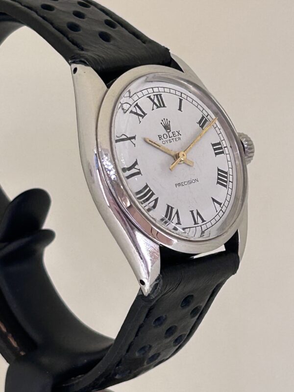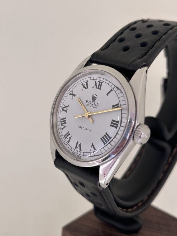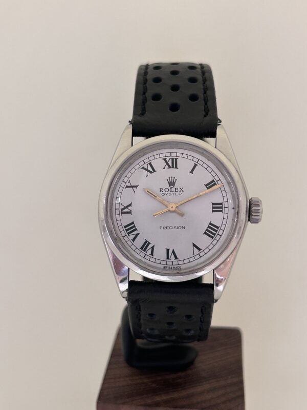 Splendido Rolex Precision carica manuale anni 70 , carica manuale , cassa in acciaio 34 mm , vetro plastica , bracciale in pelle traforato . Garantito un anno dal nostro laboratirio .